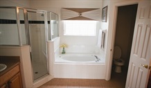| Master Suite | Wonderfully decorated, this light and spacious King sided bedroom with king size bed is fit for a king (and Queen of course!!) it is just magnificent. The window dressings are in keeping with the rest of décor and the large dressing table with Flat screen LCD TV and DVD complete this special room. The patio doors lead onto your very own private balcony with patio set – this is extra special. Sit out at night and watch the sunset or early in the morning as the Balloons from Orlando occasionally come flying by!!!! Lets not forget your en – suite. Wow!! Separate shower (its so big you might get lost in there!!!), bath tub and his n her sinks with vanity style mirrors and overhead lights. Two separate spacious closets (with another ironing board) - you don’t even get this in a top hotel!!!! |