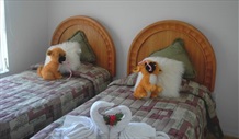 Twin Bedrooms | Three twin rooms with cuddly toys – for either the kids or you bigger kids!!! Exactly as the Queen, this room is again tastefully decorated with overhead fan, loads of closet space and of course – TV, fan and DVD!!! Tub, shower and Hollywood style vanity units! Couldn’t be more convenient for either bedroom to use privately. Bath, shower and toilet with those little feminine touches to make it Both bathrooms separate the bedrooms – upstairs and downstairs. If that’s not enough there is a further toilet next to the utility room. |