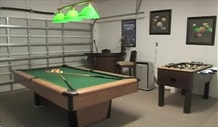 Games Room | Adults and children alike will want to spend hours enjoying all these facilities. Originally a double garage, this conversion is now a state of the art, fully equipped games room with air conditioning. Games include Foosball, a Full size Pool table, air hockey table, pinball, and Darts Board. For added entertainment there is also a television with DVD player and a cocktail bar with chairs. |