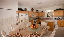 Kitchen/Diner | The large kitchen diner is fitted with an extensive range of modern appliances including a large electric cooker, dishwasher, microwave and a large fridge freezer with ice maker. For those busy mornings before the parks there is also a breakfast area which leads to the extended lanai and pool through patio doors. For more formal eating or special occasions make the most of the luxurious family dining area. |