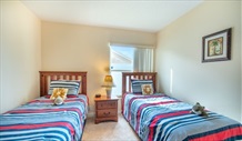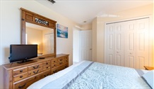 Bedroom 2 Bedroom sleeps Queen | Bedroom 2 is at the front of the villa and has a queen size bed with a Sealy Posturepedic Pillow Top mattress, two nightstands, full size dresser with mirror, radio alarm clock, built in wardrobe and a 21" flatscreen colour cable TV. The floor is carpeted. |