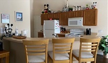 | Kitchen | The well-equipped kitchen has a full-size stove with oven, microwave, dish washer, and a large fridge/freezer with ice making machine. There is also a coffee maker and a food processor. The kitchen is separated from the living area by a long breakfast bar. There is also a concealed utility area with a clothes washer and tumble dryer. |