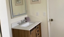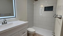 | Master Bathroom Bathroom with Stand Alone Shower, Sink and Toilet | En-Suite bathroom next to Master bedroom with walk-in shower and door to the pool area. |