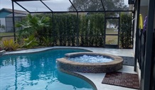| Pool-Area with Spa | Caged pool with spa, devided from the lanai with a removable security fence for the safety of your children. |