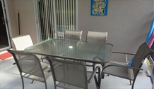 | Living Room | This room has one large corner settee and an arm chair. There is a 50" Flat Screen Smart television as well as a DVD player and PlayStation 2 console with a selection of games. The patio doors lead to the covered lanai and pool area. |