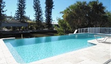 | Deck/Pool Area | Florida living is all about outside living and so this is why we mention this “room” first. The property is fully fenced from the road (a pool requirement) and so you have a very extensive private patio and pool area under and around the whole villa. There are many casual wicker settees, tables and chairs as well as a gas barbecue grill and outside dining table and chairs. You can avoid or actively search for the sun – the choice is yours. Being so near the beach there is more often than not a gentle sea breeze making this a very agreeable place to relax at any time of the day. Sip a drink, dip your feet in the pool and wait for the dolphins. |