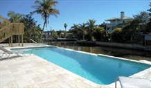Island setting, 4 Bed 2.5 Bath Villa, 8 minutes stroll from the lovely Fort Myers Beach. 33 Foot Infinity Pool giving onto canal (dolphin and manatee visits). Pool loungers provided. Extensive outside south facing Patio/Deck/Pool area with dining & sitting areas, barbecue. Dock for relaxing, direct access to Gulf. Sleeps 8. Fast WiFi Internet Access throughout inside and out.
