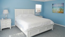 | Bedroom 4 Bedroom sleeps Queen | A more modern feel to this bedroom with a modern queen bed and matching cabinets. As with all the other bedrooms it is light and airy and is finished off with a large wicker dresser and matching vanity mirror. |