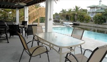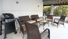 Deck/Pool Area | Florida living is all about outside living and so this is why we mention this “room” first. The property is fully fenced from the road (a pool requirement) and so you have a very extensive private patio and pool area under and around the whole villa. There are many casual wicker settees, tables and chairs as well as a gas barbecue grill and outside dining table and chairs. You can avoid or actively search for the sun – the choice is yours. Being so near the beach there is more often than not a gentle sea breeze making this a very agreeable place to relax at any time of the day. Sip a drink, dip your feet in the pool and wait for the dolphins. |